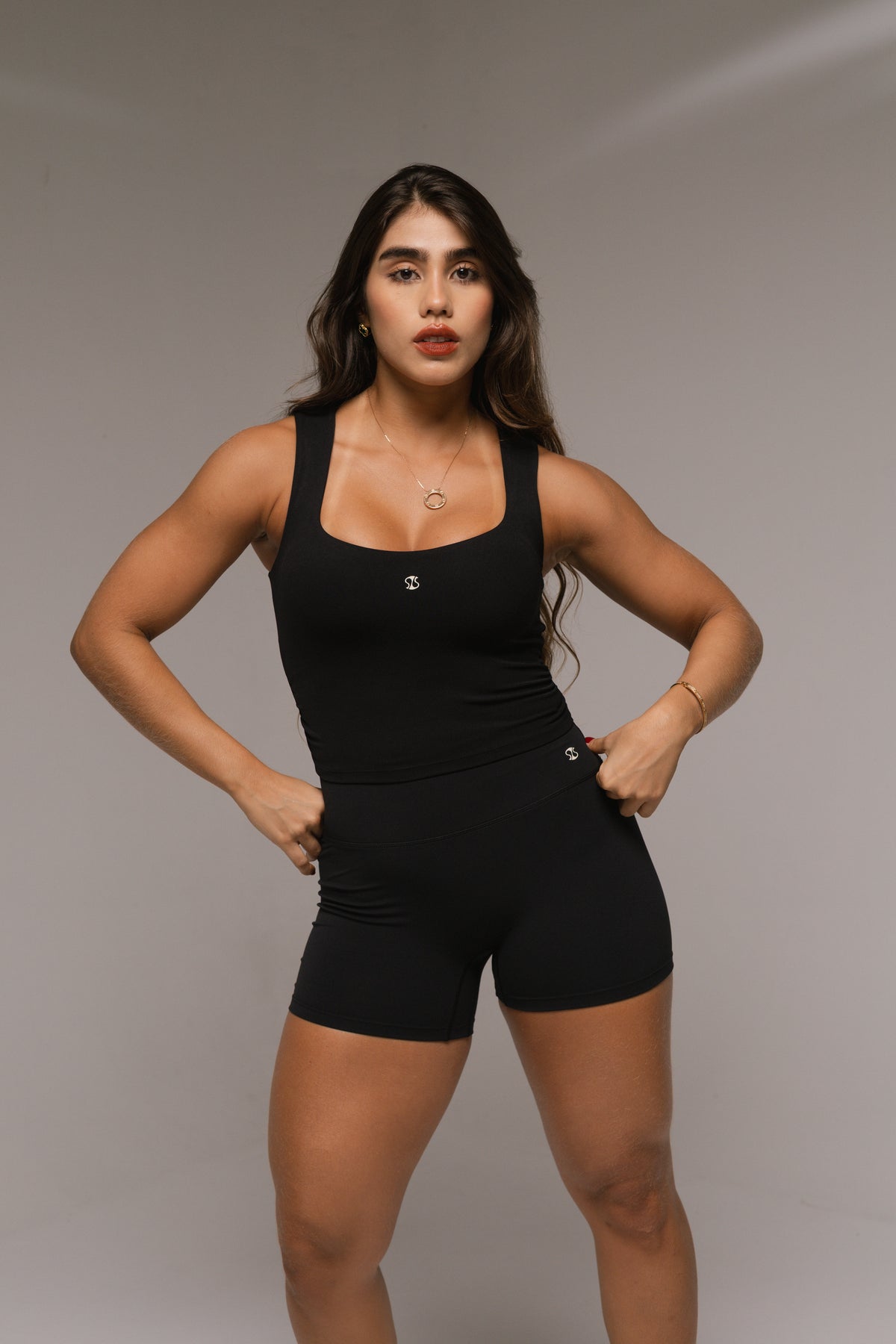 El Short Fit combina libertad y control en una sola prenda. Su diseño de cintura alta estiliza la figura y brinda soporte abdominal, mientras el tejido elástico de compresión suave realza los glúteos y se adapta al movimiento sin marcar.
